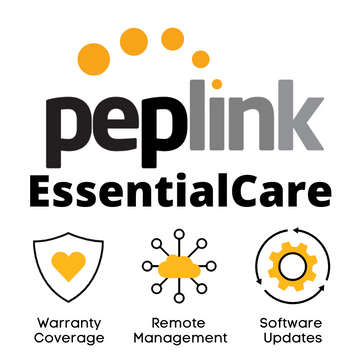 Peplink EssentialCare optional extended warranty packages provide customers with Incontrol2 cloud management licensing, software updates, firmware updates, and extended factory warranty support for devices deemed defective by Peplink's warranty support department. EssentialCare is a cost effective and convenient way to extend the warranty coverage of your Peplink device for customers who do not need advanced replacement support. Note that EssentialCare cannot be purchased for devices outside of existing warranty. Warranty and license purchases are non-refundable due to manufacturer policies.